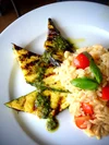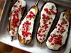Roast aubergines with buttermilk dressing and pomegranate seeds